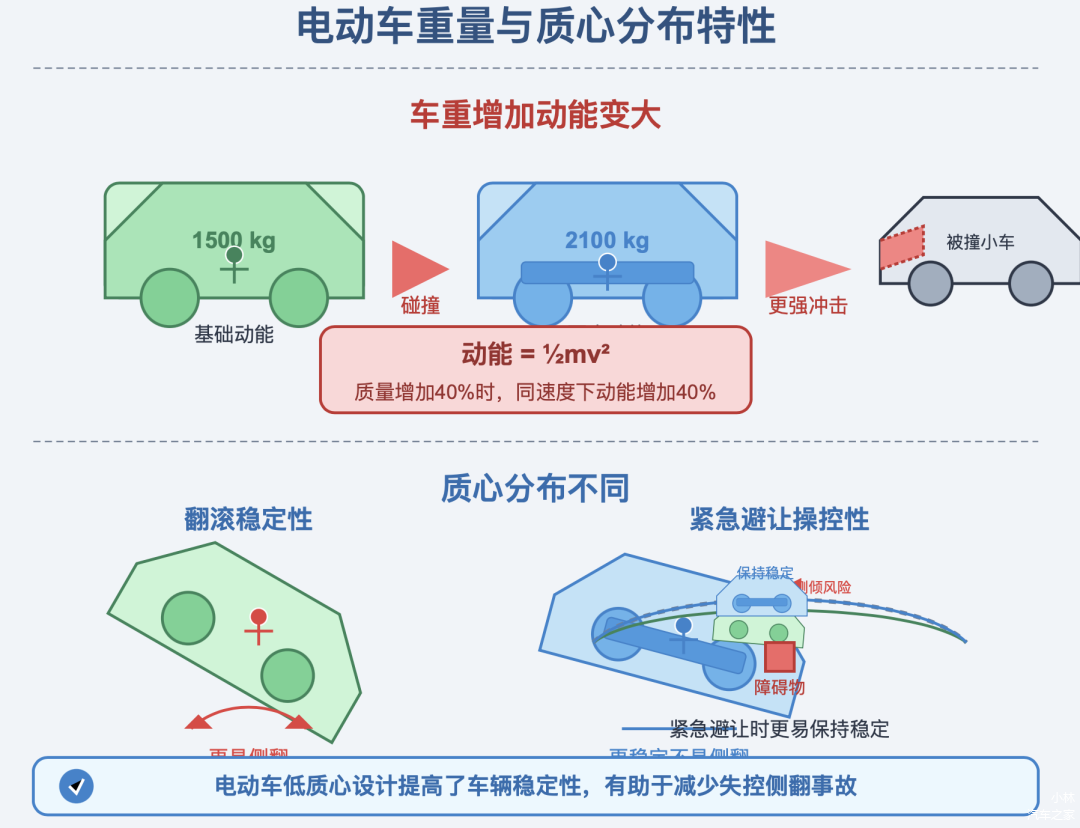 电动车往往比同级燃油车更重。电池组的重量可达数百公斤,使整车整备质量增加20%以上。这带来两方面影响: