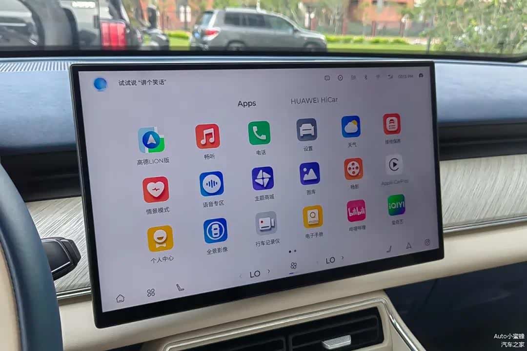中控台搭载了10.25英寸全液晶仪表和15.6英寸悬浮式中控屏,内置高通8155芯片和HMI5.0系统,支持Carplay、HiCar、Carlink全维覆盖,并配备了AI大模型智能语音助手。