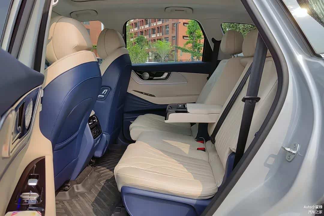 第二排座椅的靠背可调角度高达34°,前后滑轨可调可达260mm,得益于高达70.04%的得房率以及领先同级的车身尺寸,带来了相当宽敞的空间表现。