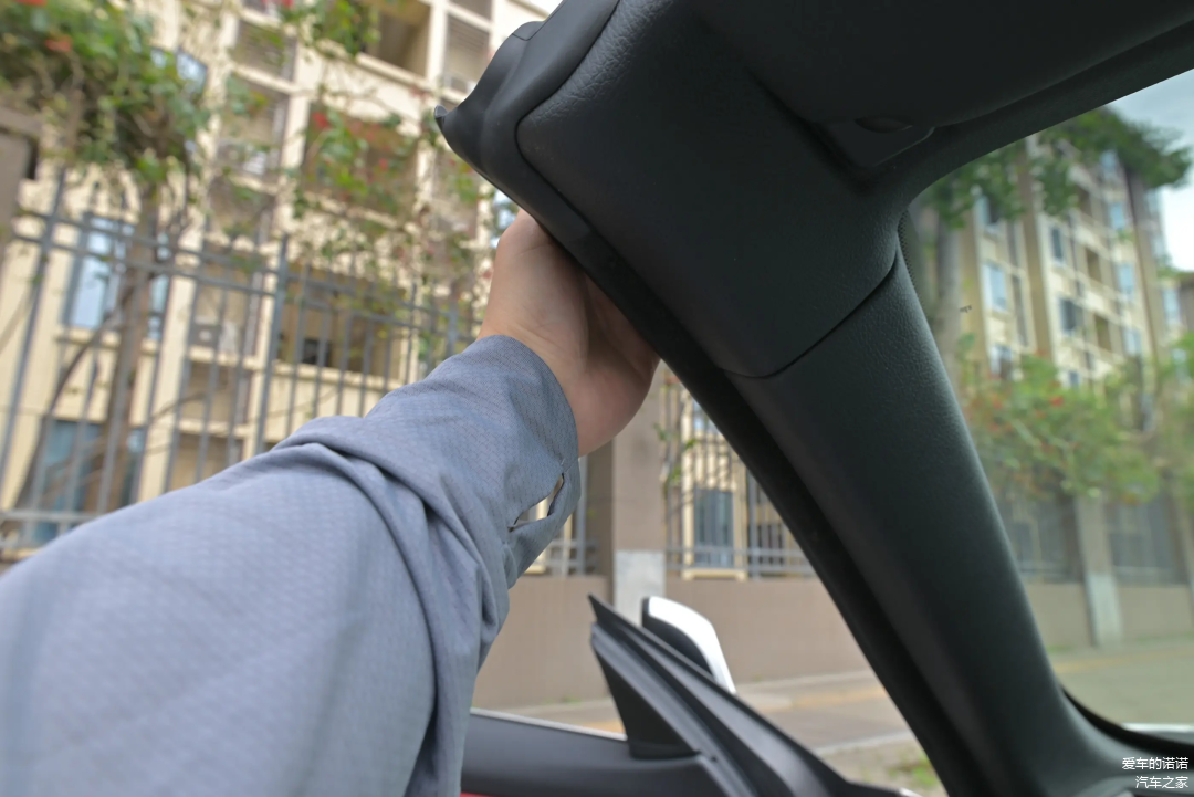 4系的重心和坐姿是比较低的,上下车可以把着A柱这里借力,个人总结的小使用技巧,适用于绝大多数敞篷轿跑,分享给大家。