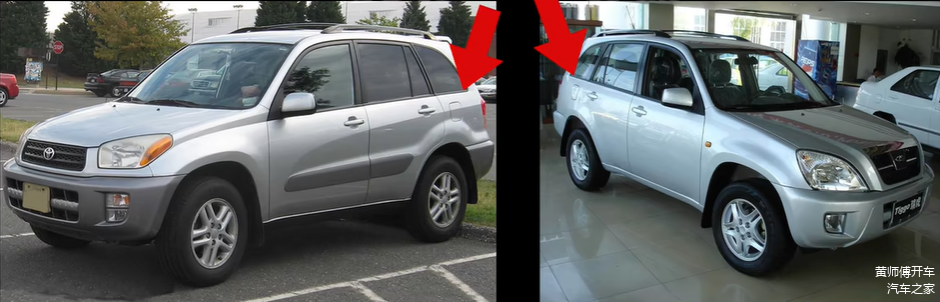 最明显的区别就是加油口位置,RAV4在左,瑞虎在右。
