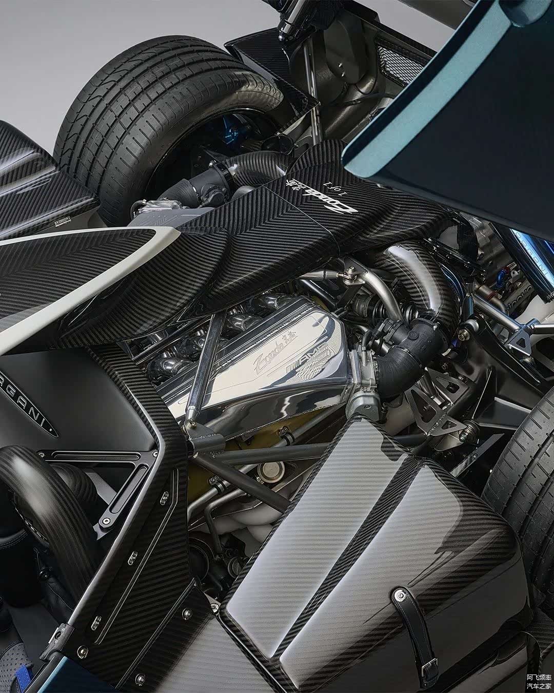 虽然官方尚未公布详细技术参数,但Zonda Unico拥有全碳纤维车身,整体披上一层迷人的蓝色光泽。车身多个部位如前挡风玻璃边框、后视镜罩、头灯罩和散热通风口,均以裸露碳纤维材质呈现,透露着高级手工艺的质感。