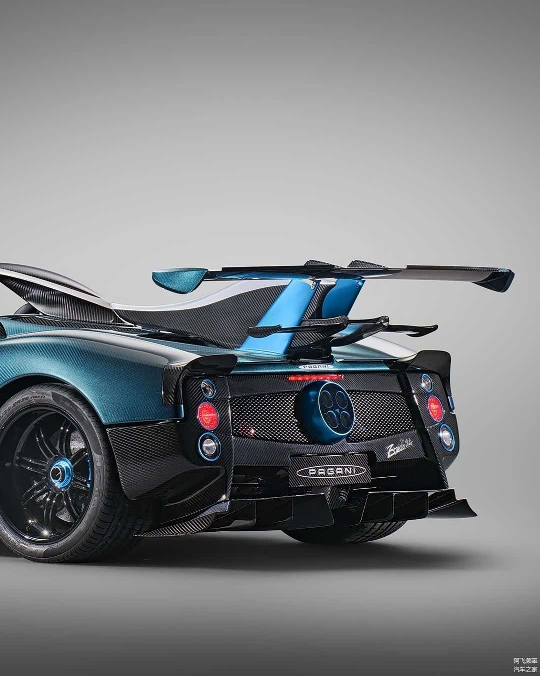 尾部中央则为Zonda车型标志性的四出排气布局,后包围底部则配备了造型夸张的扩散器造型。夸张的空气动力学套件还包括一块巨大的中央稳定鳍和极具视觉冲击力的车顶进气口。