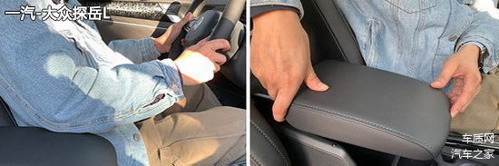杯架测试中,四款车型均配备4个水杯架,除一汽-大众探岳L外,另外三款车型的全部杯架都有限位器,方便乘客日常使用。