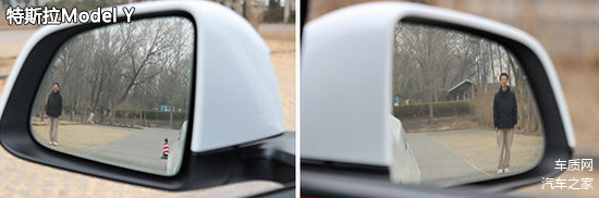 在外后视镜视野范围测试环节中,四款车型均表现一般,除一汽-大众探岳L左外后视镜视野范围角度优于同级别车型测试均值外,另外三款车型的左右外后视镜视野范围角度均未达到同级别车型测试均值。特斯拉Model Y在本测试环节中成绩垫底,左右外后视镜视野盲区偏大。