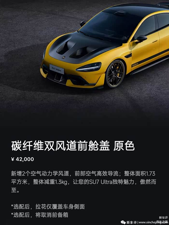 官方强调,碳纤维双风道前舱盖除了满足复刻外观造型的需求外,确实提供了"部分气流导出和辅助前舱散热功能"。此外,碳纤维整体使用面积达到1.73平方米,为整车带来了1.3公斤的减重效果。小米汽车还特别指出,他们近期在各赛道刷圈时使用的均为配备碳纤维双风道前舱盖的SU7 Ultra版本。