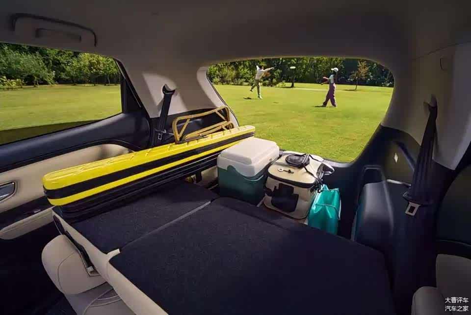 作为家庭用车的核心诉求,空间表现直接决定了日常出行的舒适度。五菱缤果SUV五座版以“大空间”为产品标签,车身尺寸达到4090mm×1720mm×1575mm,轴距2610mm,远超同级竞品。其882mm的二排座间距和78.4%的横向空间利用率,可轻松容纳5名成人,后排甚至可同时放置两个儿童座椅;下沉式后备箱设计配合4/6分放倒座椅,容积可扩展至1450L,露营装备、婴儿车等大件物品也能轻松装下。对比比亚迪元UP(参考数据:车长约4米,轴距约2560mm),该车虽定位小型SUV,但空间布局更偏均衡,满载场景下的腿部空间、后备厢容积与储物灵活性略逊一筹。
