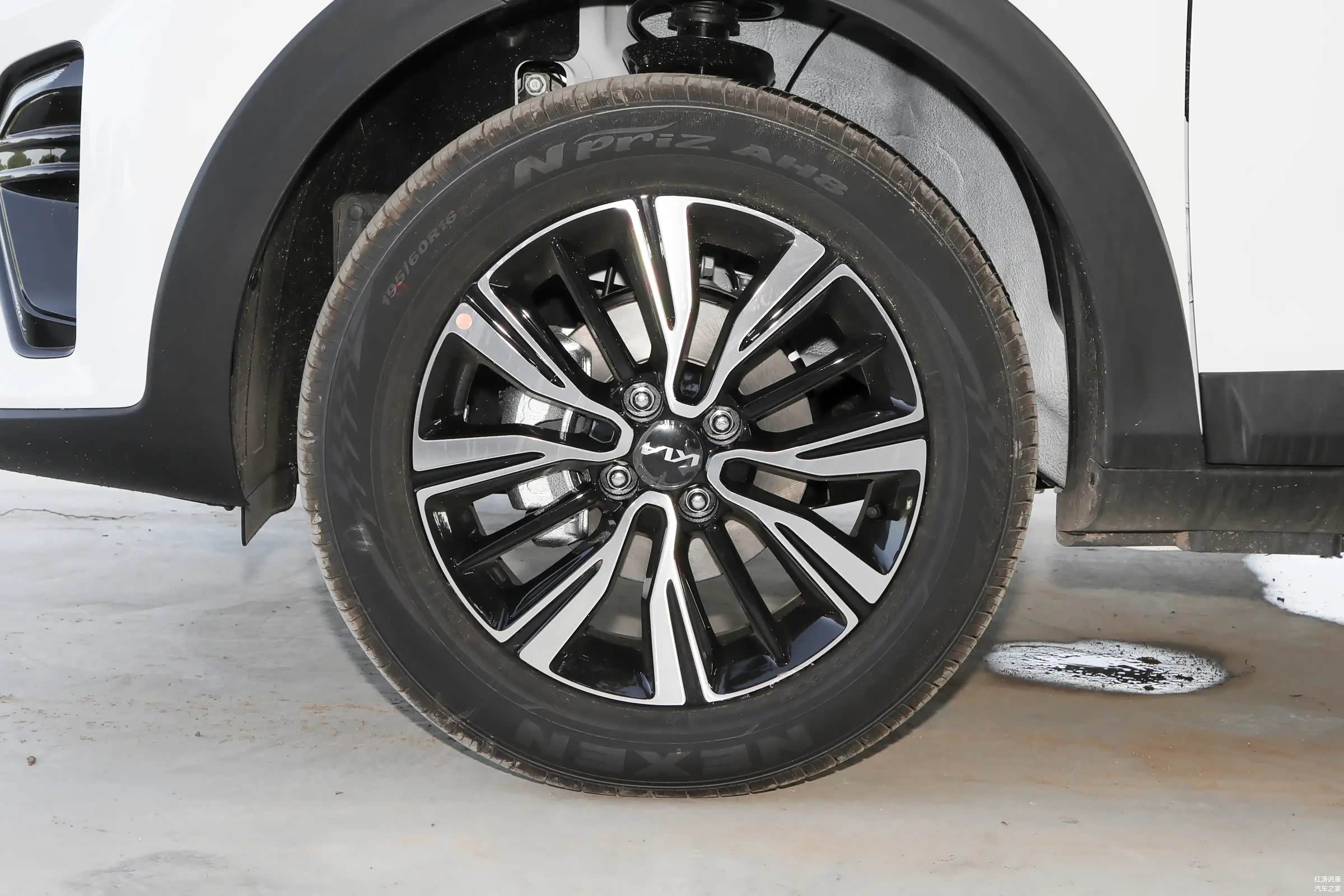 整车长宽高分别为4100*1735*1533毫米,轴距为2570毫米,个头虽小,但看着并不小气,黑色轮眉、黑色侧裙、黑色后包围、银色护板以及车顶行李架的设计,提升了运动感。