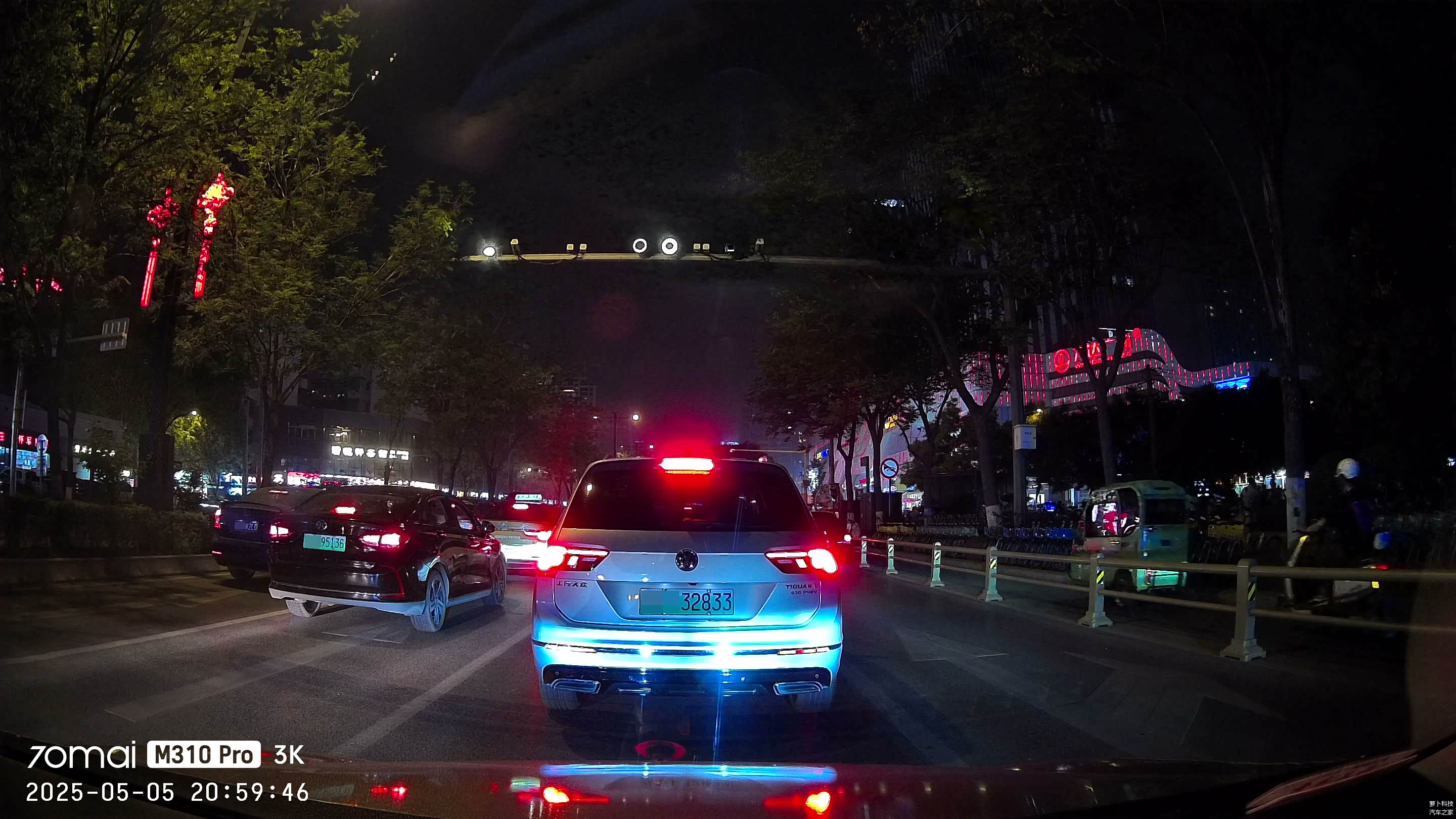 在光线较暗的环境下,比如夜间行车或者地下车库,它搭载的70迈自研星光夜枭影像技术开始发挥强大实力。与前代相比,进光量提升约78%,低照度环境下亮度提升35%,画面依旧清晰,暗处的细节也能完美呈现,让夜间出行也能安心记录。