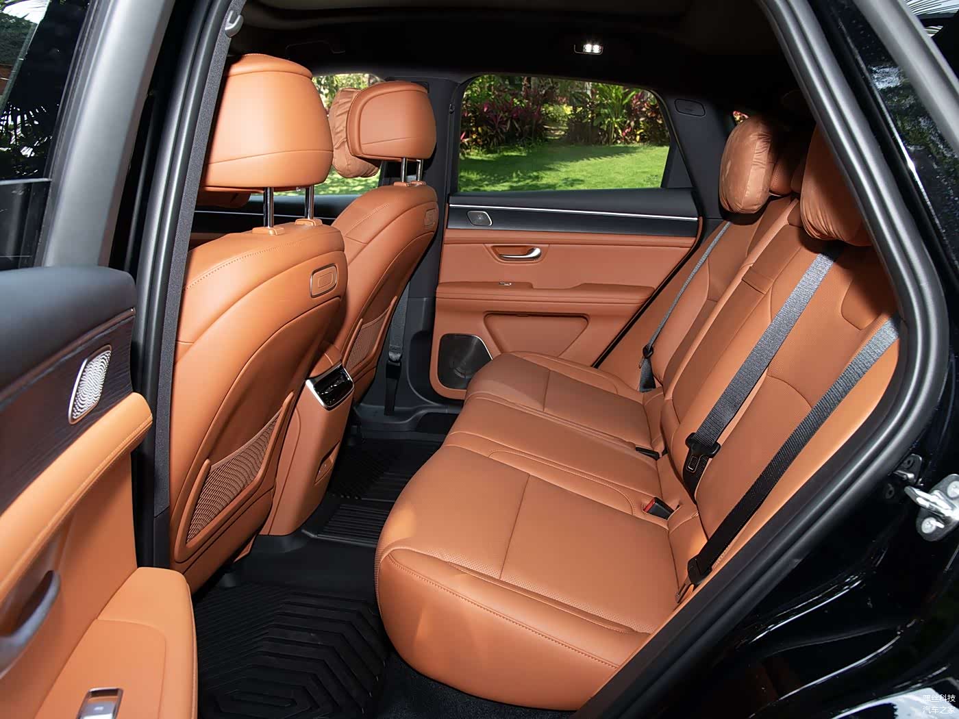 舒适性方面,大家通过图片也能感受到,新车的前排、后排头部、腿部空间,都是比较充裕的,应付三口之家的日常通勤、长途自驾,都绰绰有余。同时,得益于新能源平台的纯平底盘优势,及不错的车身宽度,后排三人乘坐,也不会显得特别拥挤。后备箱也有很强的实用性,常规状态容积为369L,能够纵向同时容纳多个行李箱,而且像220V电源、照明灯、拓展锚点等,一应俱全。