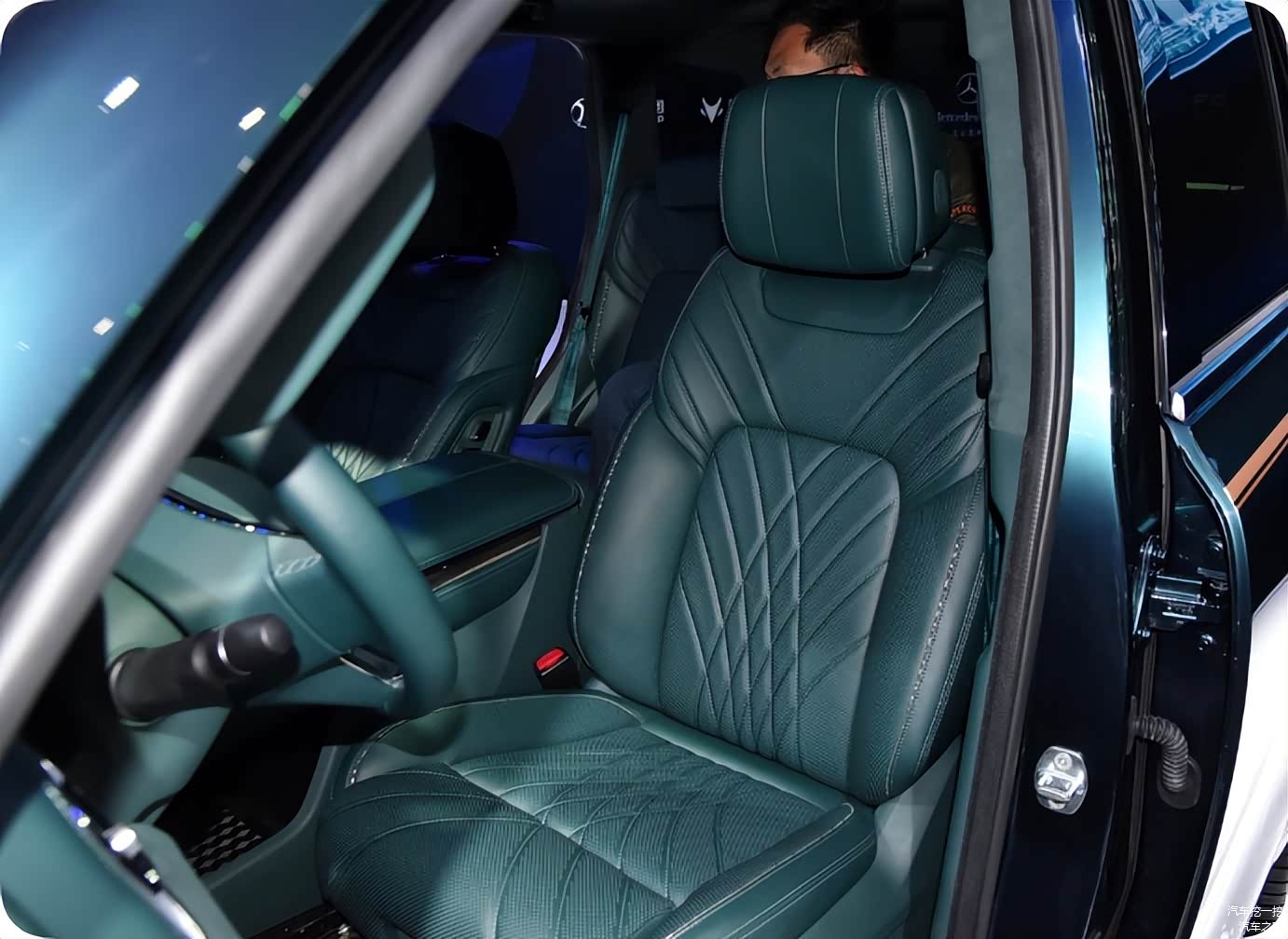 车内以深绿色调搭配全域真皮包裹营造高档氛围,软质材料覆盖车门、台面等细节,木纹饰板植入品质感媲美比亚迪汉千山翠版的水晶电子挡杆,中控台更是让人眼前一亮。座椅设计符合人体工学,加上腰托调节和通风功能,座垫长度充足,长途行车不容易疲劳。后置航空式头枕,独立空调控制和USB接口,地板平整化设计增强了中间乘坐者的乘坐舒适感。