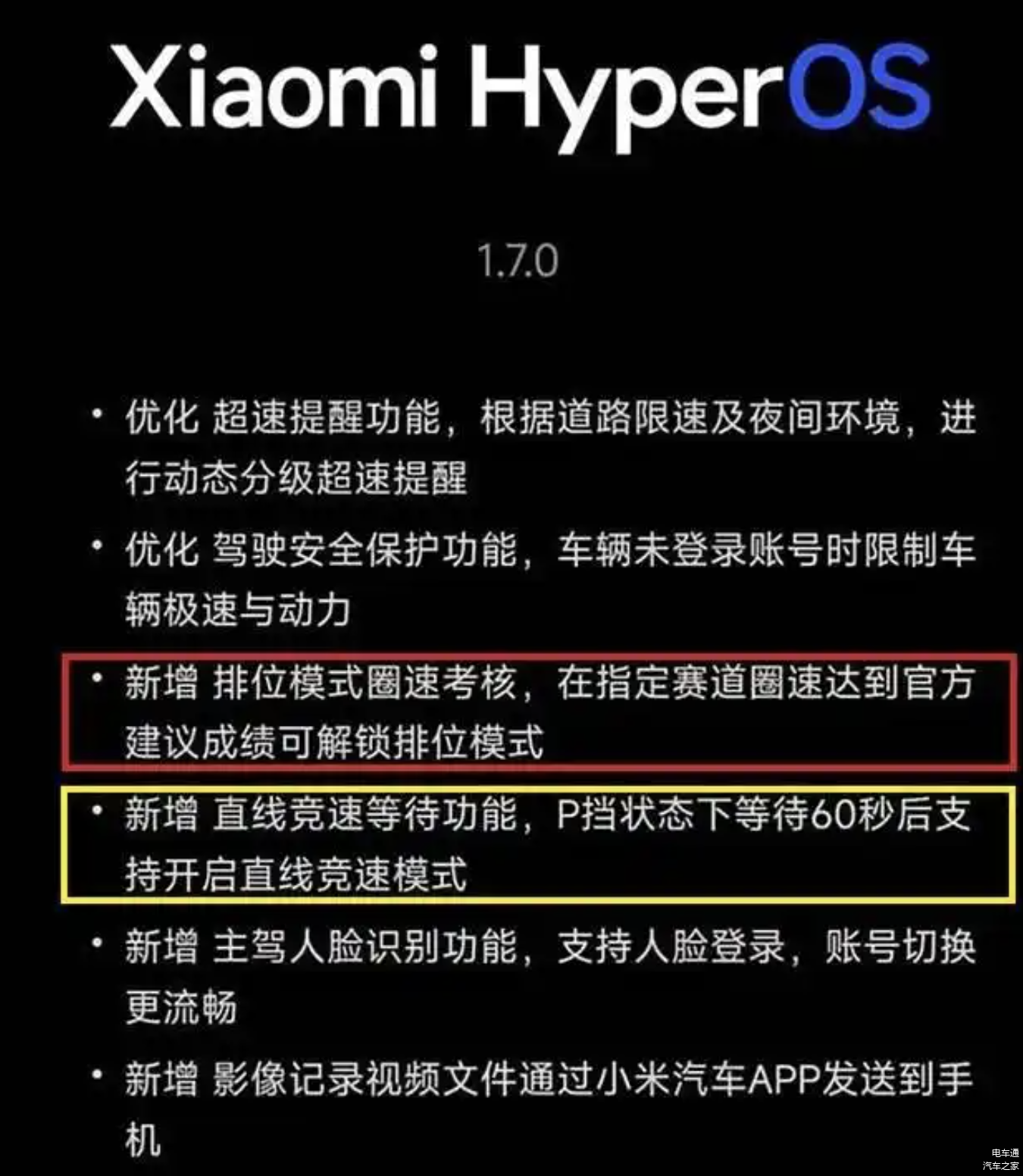 5月1日,多名小米SU7 Ultra车主通过社交媒体对外表示,其购买的小米SU7 Ultra的车机系统通过OTA升级至Xiaomi HyperOS 1.7.0版本,此次升级除了对一些功能进行优化外,最大的变化是增加了“排位圈速考核功能”。