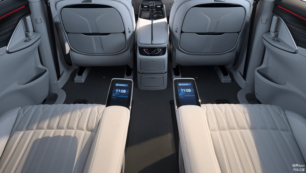 12.3 英寸双联屏由全液晶仪表盘与中控触控屏组成,仪表盘可显示车辆动力输出、续航信息、驾驶辅助状态等,中控屏搭载斑马智行 VENUS 系统,支持 AI 语音交互、智能导航、在线音乐视频播放等功能,操作界面简洁直观。第二排 S 级豪华座椅骨架采用高强度钢材,表面覆盖亲肤透气的打孔真皮,加热功能具备三档温度调节,通风采用静音风扇,按摩功能拥有 8 种按摩模式、3 档力度调节,电动腿托可实现 0 - 80° 调节,为乘客带来极致的舒适感。