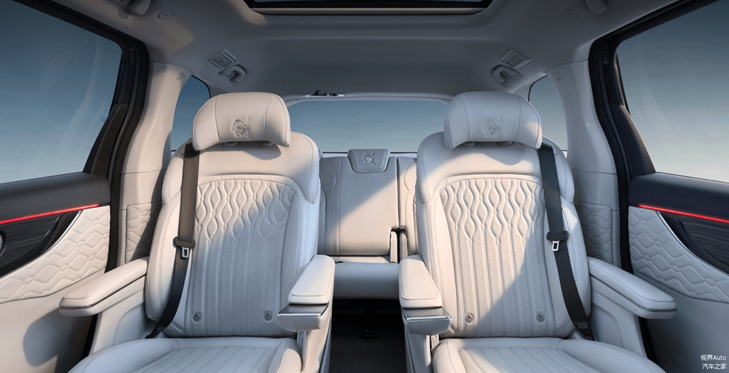 车内第二排 “青云座椅” 骨架采用航空级铝镁合金材质,重量轻且强度高,表面采用婴儿级亲肤面料,触感细腻。座椅配备独立扶手屏,可调节座椅角度、加热 / 通风 / 按摩功能,左右横向调节范围达 160mm,方便家长照顾孩子。第三排采用剧院式阶梯设计,腿部空间充裕,后备箱常规容积 593L,放倒第三排后可形成纯平空间,最大可扩展至 2792L。