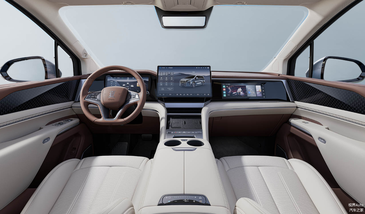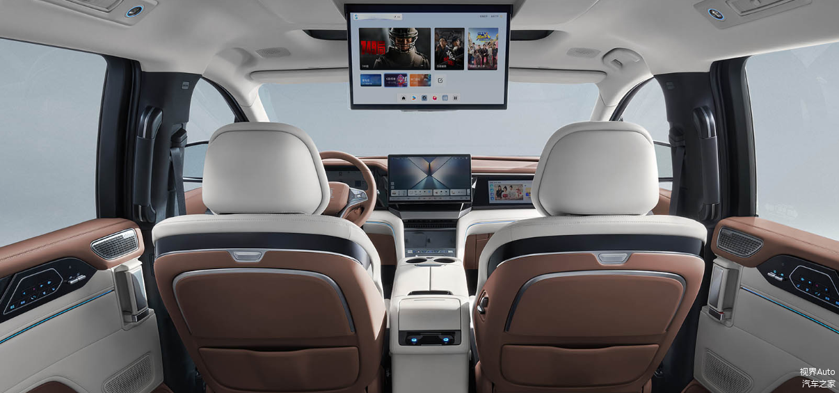 车内 15.6 英寸中控屏搭载 DiLink 150 智能座舱,采用 8 核处理器,运行流畅。三屏联动功能可将中控屏内容同步至第二排娱乐屏,支持 4K 视频播放。第二排航空座椅采用 Nappa 真皮材质,内部填充高密度记忆海绵,贴合人体曲线,加热、通风、按摩功能一应俱全,配备的车载冰箱制冷温度最低可达 - 6℃,K 歌系统配备专属麦克风接口与独立音响调校,无论是日常出行还是长途旅行,都能为乘客带来极致的舒适与娱乐体验。
