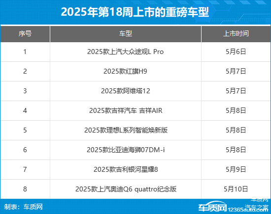 2025年第19周(5月12日-5月18日)上市新车预告