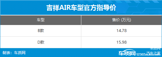 5月8日,车质网从相关渠道获悉,吉祥AIR国内正式上市。新车为吉祥汽车旗下首款车型,定位为紧凑型车。此次上市新车共2款车型,售价区间为14.78-15.98万元。