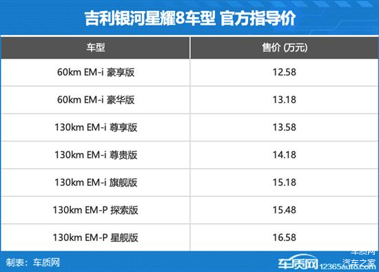 5月9日,吉利银河星耀8正式上市。新车以“技术普惠”之姿强势登场,重新定义了中大型电混轿车的价值标准。此次上市共推出7款车型,售价区间为12.58-16.58万元。