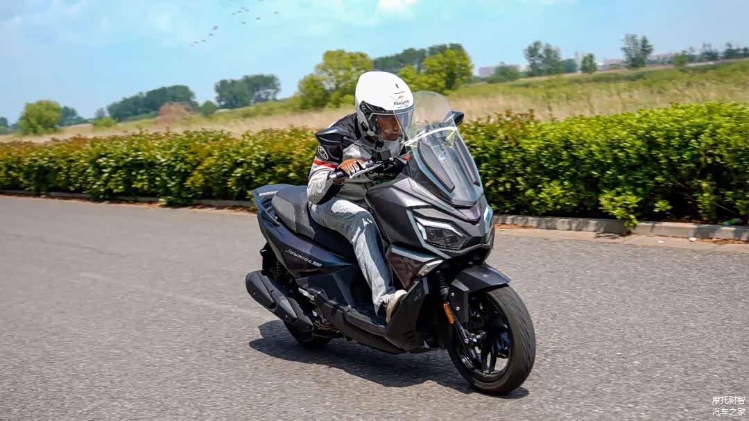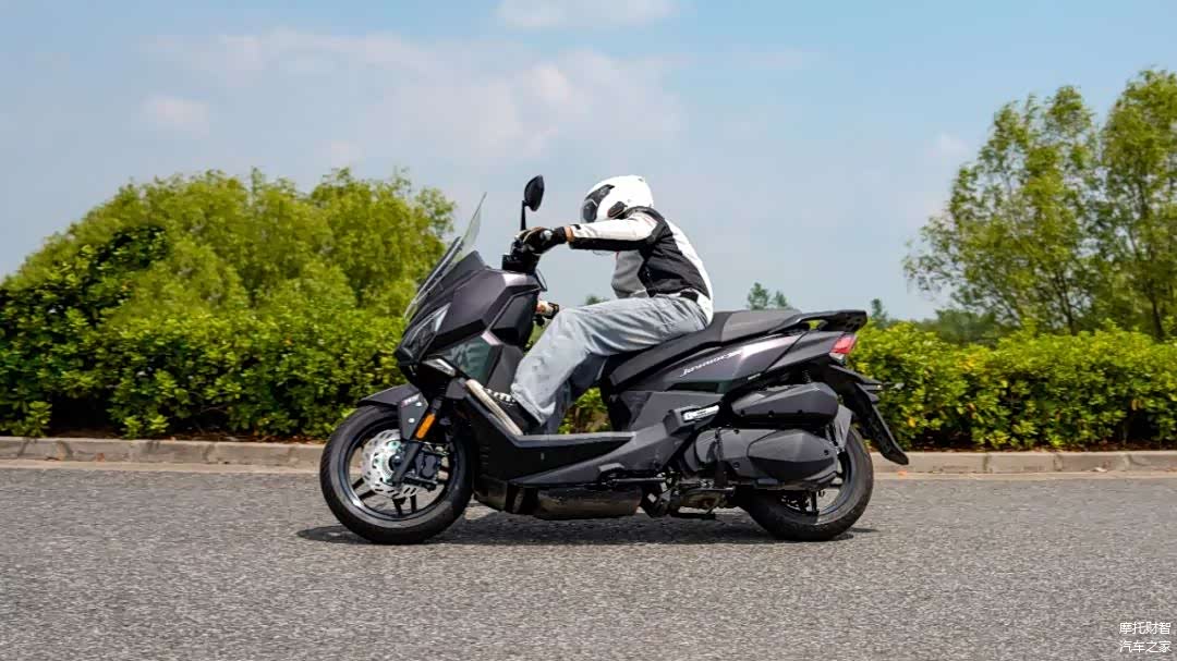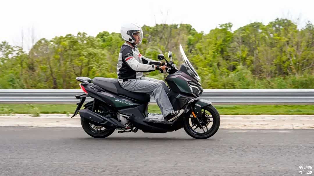 实测0-60km最好成绩为3.7s,0-80km/h最好成绩为6.4s,0-100km/h为10.8s,加速成绩在同类踏板中居于中上水准,出力特性是注重中低转输出,用来日常以及旅行使用,非常合适。实测表显极速为144km/h,P-BOX同步显示为135.2km/h,这基本是行者300的极限速度了,极速时的稳定性优异,无任何发飘感。