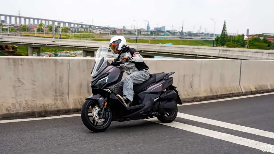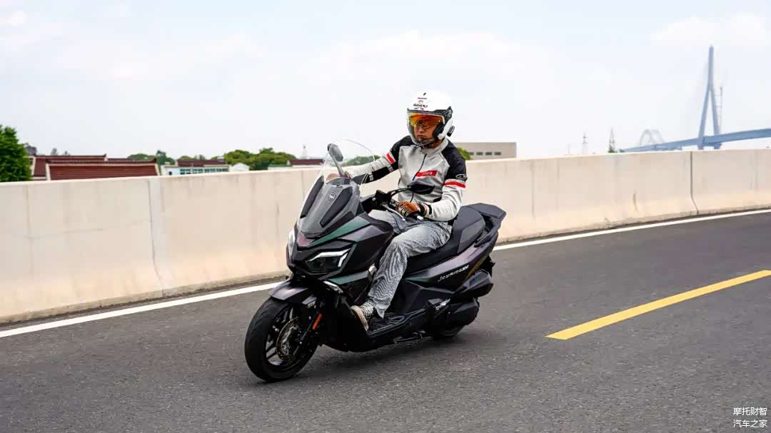 考虑到行者300多面手定位,我们也是特意在国道以及沿江道路进行了50多公里的长距试驾,动力表现应对国道超车毫无压力,在封闭道路连续120km/h的速度驾驶,车辆的稳定性出色,在国道上90km/h以上的速度巡航,再加速进行超车,一气呵成,行者300最适合巡航的速度区间,在时速100km/h左右,整车的震感轻微,又有很好的动力输出,给骑士的体感最为舒适。