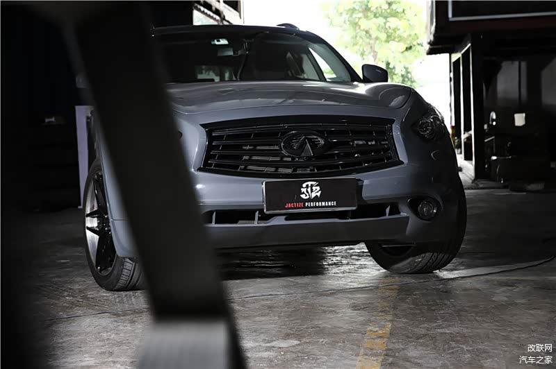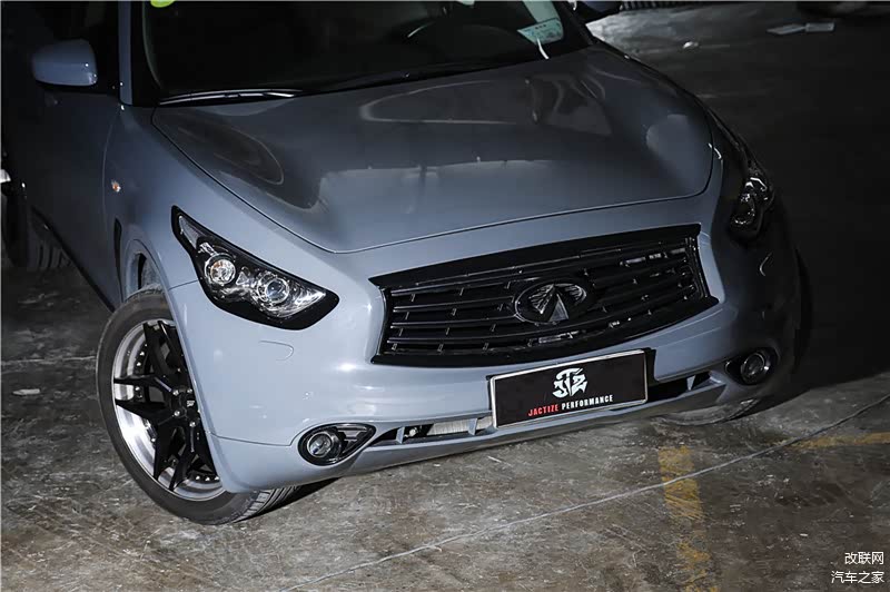 Infiniti QX70原厂搭载一具3.7L V6自然吸气引擎,不过此次并没有对引擎动刀,依然维持原来的351马力/37.0kgm的配置,仅在进气方面换上了Karztec干式碳纤维进气套件,以进一步提高进气效能。不过光凭这身涂装,所凸显出来的线条显得更加利落,车头进气格栅采用黑色处理,这算是改装爱好者惯用的手法。但讲真的,相较于原车的闪烁镀铬饰条,煞气一下子带出来了。