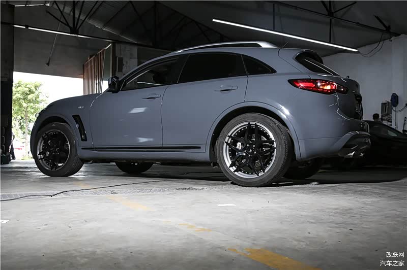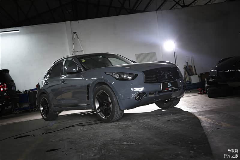 此次为大家带来的改装案例,车辆主要为日常代步用途,因此改装项目偏向美观、实用和安全作为他的主要诉求,改装项目并不多但基本满足到使用上的需求。这次分享的就是拍摄的这辆换上Nardo Grey(水泥灰)的Infiniti QX70,如同大多数车辆一样,有时候一个意想不到的烤漆涂装就会给车辆带来完全不同的视觉感受,正如眼前的这辆。其实水泥灰车色对于奥迪车或德系车的车迷而言并不陌生,但这种配色放在这辆日系品牌车身上,如同穿上了一身新衣裳,看起来别有一番风味。另外,该车还增添了不少黑色元素,诸如轮圈、进气格栅、灯组边缘、铭牌等位置,一切与视觉感官相关的地方通通以平光黑色处理,而全车身皆以水泥灰车色涂装包覆。