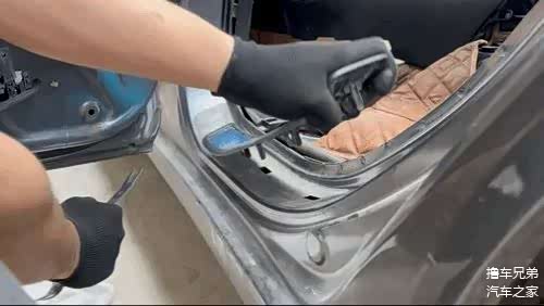 前排座椅还是很重的,要把它完好无损从车门拿出,还是需要一定技巧