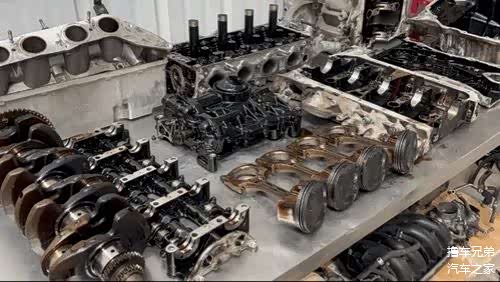 发动机分解过程过于繁琐,在这里就不一一给大伙展示了,上图是分解完未清洗的状态,在这期间,我们需要对拆解的部件进行分类。有问题或者不符合标准的,都要进行更换或者维修。
