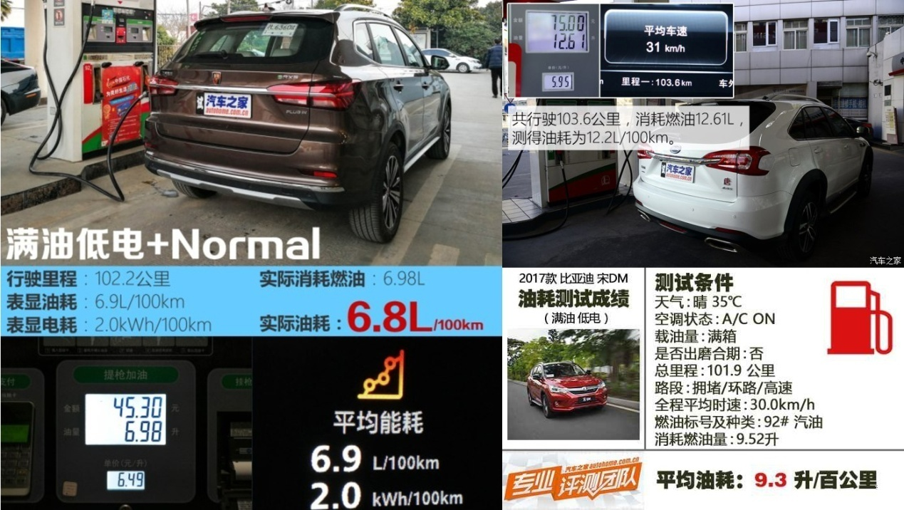 对于消费者来说,买车前通常会上汽车之家、易车等专业测评网站看看实际测评。从汽车之家对荣威eRX5、唐和宋DM的对比测评中,我们可以看到三车在满油低电状况下的油耗表现。