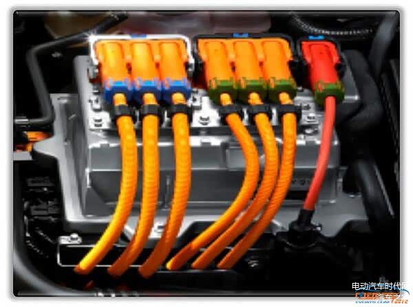 在内燃机旁边的是电控系统:PEB电力电子箱。它会根据车辆的工况以及电池的电量来切换驱动模式。靠的就是这2组6根橙色高压线缆,通过高压线缆,PEB将电池组输出的直流电逆变升压,并转化为三相交流电,进而驱动TM电机与ISG电机运转。