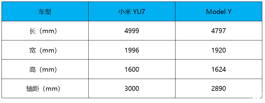 具体参数方面,焕新Model Y长宽高为4797x1920x1624mm,轴距2890nmm,整备质量1921/1992kg,轮胎规格最高255/40 R20;小米YU7长宽高为4999x1996x1600mm,轴距3000mm。可以看出,小米YU7整体车身更宽长一些,而且轴距长达3000mm,预计乘坐空间也会更大一些。后备厢纵深1080mm,垂直装载能力提升30%。