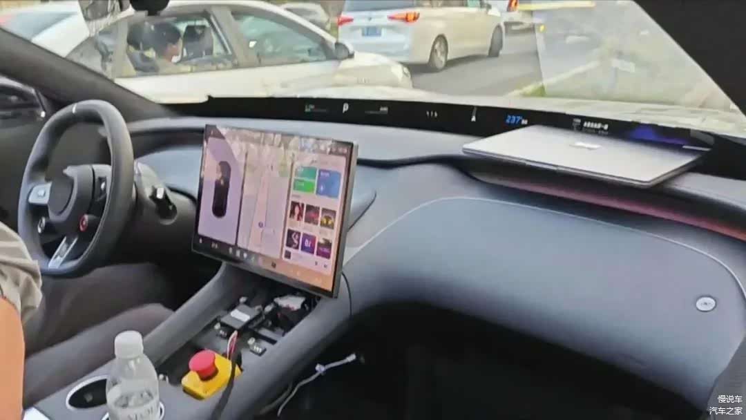 根据爆料的内饰图片来看,小米 YU7 取消了传统电子仪表盘,转而采用在前挡风玻璃下方新增长条形 PHUD 进行替代,用于汽车的电量续航、档位、时速、导航信息等信息,看起来非常具有科技感!此外,新车还取消了中控下方的实体按钮;杯架也由原来的竖向贯通式,调整为横向排列的两个独立杯架。