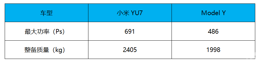 再来看动力方面,根据本次申报的信息,小米YU7将搭载最大功率691马力的双电机四驱系统,而新款特斯拉Model Y目前还没有具体的动力参数,参考现款Model Y Performance高性能版的最大功率为486马力。而且小米YU7功率重量比为287马力/吨,而现款特斯拉Model Y Performance功率重量比为243马力/吨,因此小米YU7在动力表现方面预计也会优于Model Y。