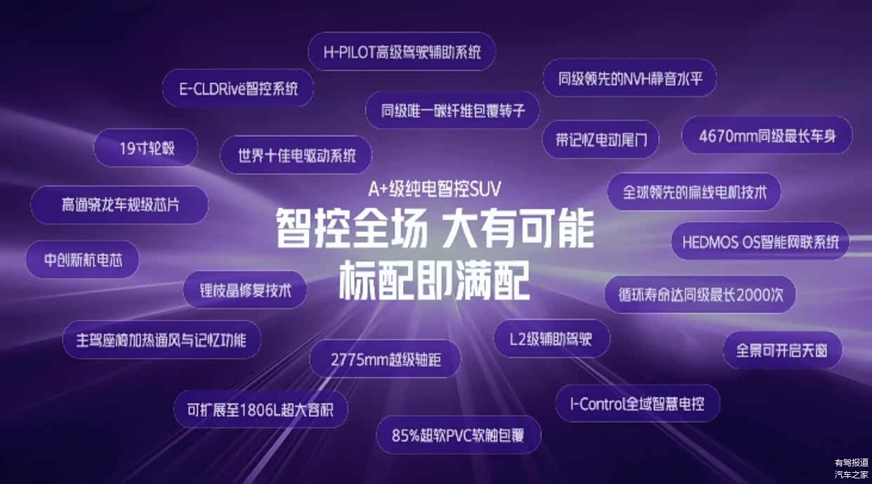 一体式座椅看上去比较运动,同时根据配置不同,为用户提供 了前排座椅加热、主驾驶座椅通风等功能。车尾的电动尾门,也增强了部分场景下的使用便利度。