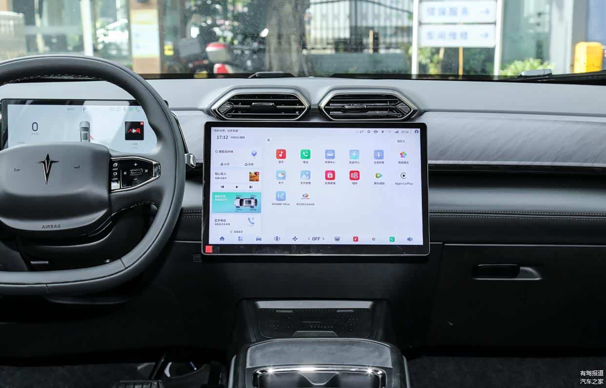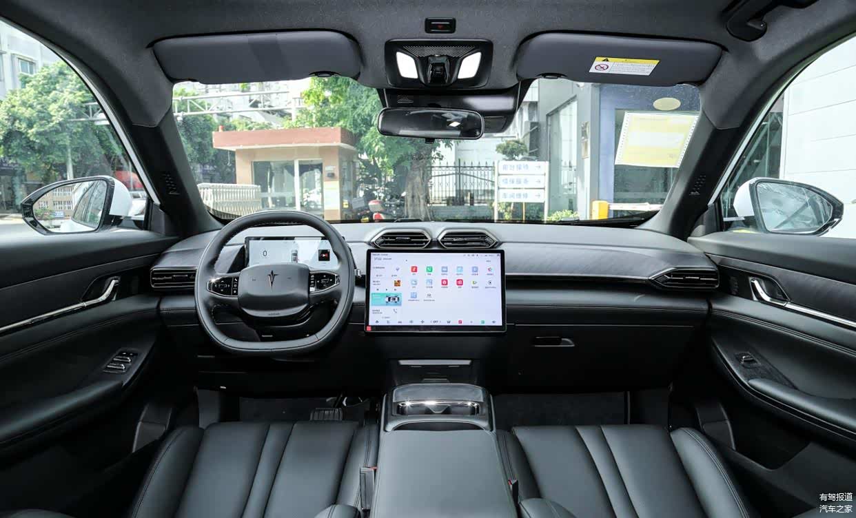 中控台运用了搪塑工艺和皮革材质进行覆盖,提升了内饰的氛围感。中控屏尺寸为14.6英寸,内置高通骁龙8155芯片,副仪表台配有无线充电设备,能满足大部分用户日常用车和娱乐的需求。