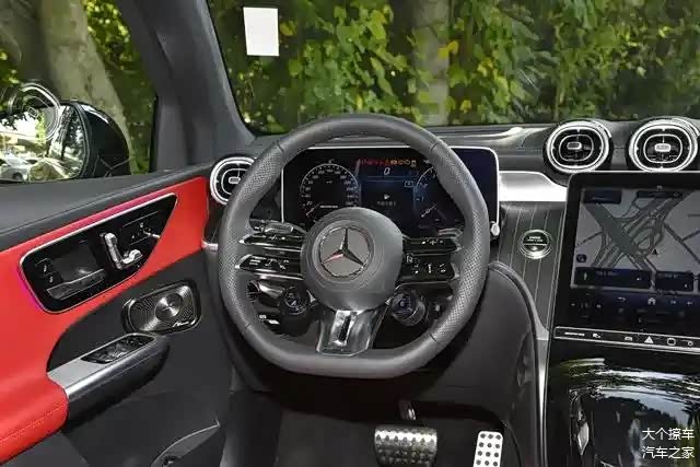 2025款奔驰GLC AMG 43 4MATIC在内饰设计上延续了前款车型的设计理念。特别是在控台音区域,它配备了Nappa皮饰AMG高性能方向盘(支持电动调节/记忆换挡拨片)、HUD抬头显示、12.3英寸的液晶仪表和11.9英寸的竖向中控屏。与此同时,这款新车仍然采用了电子怀挡换挡系统。