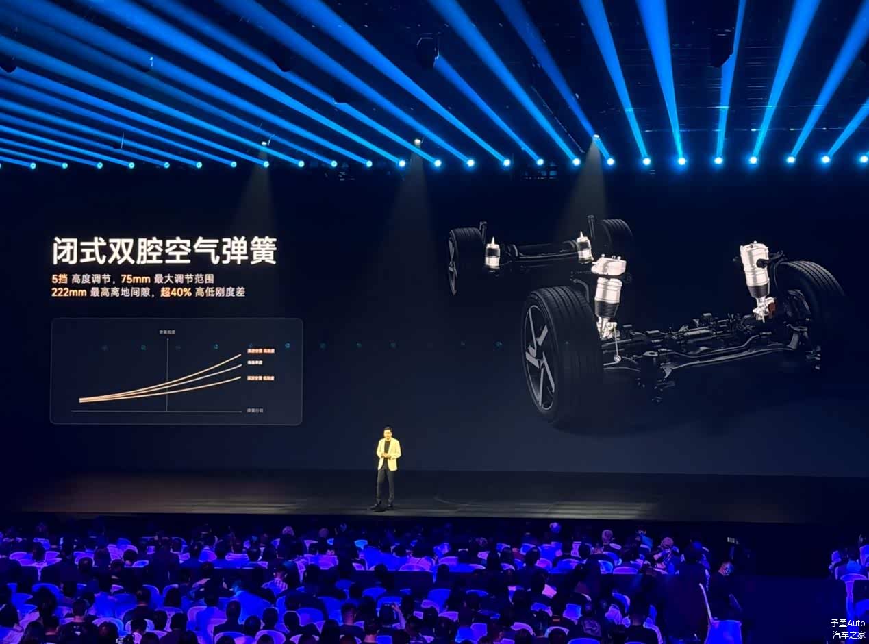 制动33.9米,配备全新V6s PLUS电机,转速提升至22000转;前双叉臂后五连杆,标配CDC可变阻尼,高配上闭式空簧(5档/75mm调节);最高充电倍率5.2C,15分钟补能620km;车身扭转刚度做到47610N.m/deg。