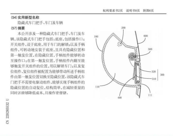 争议比较大的一点是,为什么不沿用小米SU7上的半隐藏式门把手?发布会会上也专门解释了这一点,但其实网友之前就扒出了一张小米汽车在2023年6月专门为隐藏式门把手申请的专利图。其实是一个独立机械结构,并不是像全隐藏式门把手的弹出式设计。简而言之,就是当我们靠近车辆,触碰到门把手便会解锁,然后复位,可以理解为半隐藏式的升级版,既减少了风阻又保持了便利,这个值得表扬。有意思的是法拉利FUV的门把手也是类似的设计。