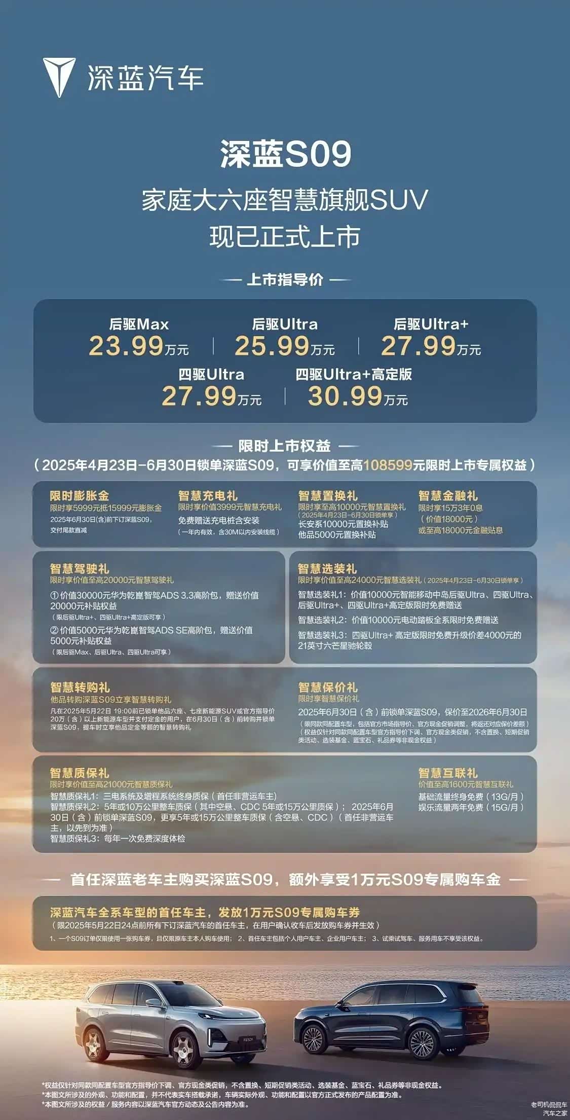 而深蓝S09也不是没有优势,高配车型的华为ADS智驾确实要强一点,所以到底怎么选,还是看你的购车需求吧。你们觉得深蓝S09这次上市,诚意给到位了吗?