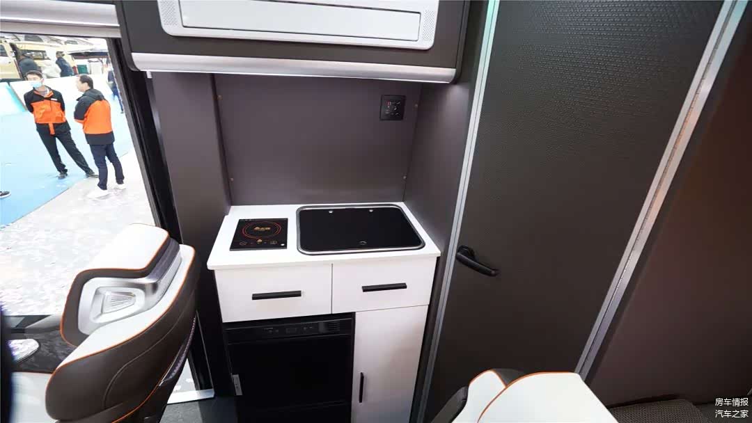 车内还配备了电动吊床与独立卫生间,为两人提供了舒适便捷的休息空间。厨房区域虽不宽敞,但电磁炉、洗菜池与 50 升冰箱等设施一应俱全,足以应对日常的烹饪需求。而微波炉与空调则巧妙隐藏于吊柜之中,巧妙地利用了车内空间。