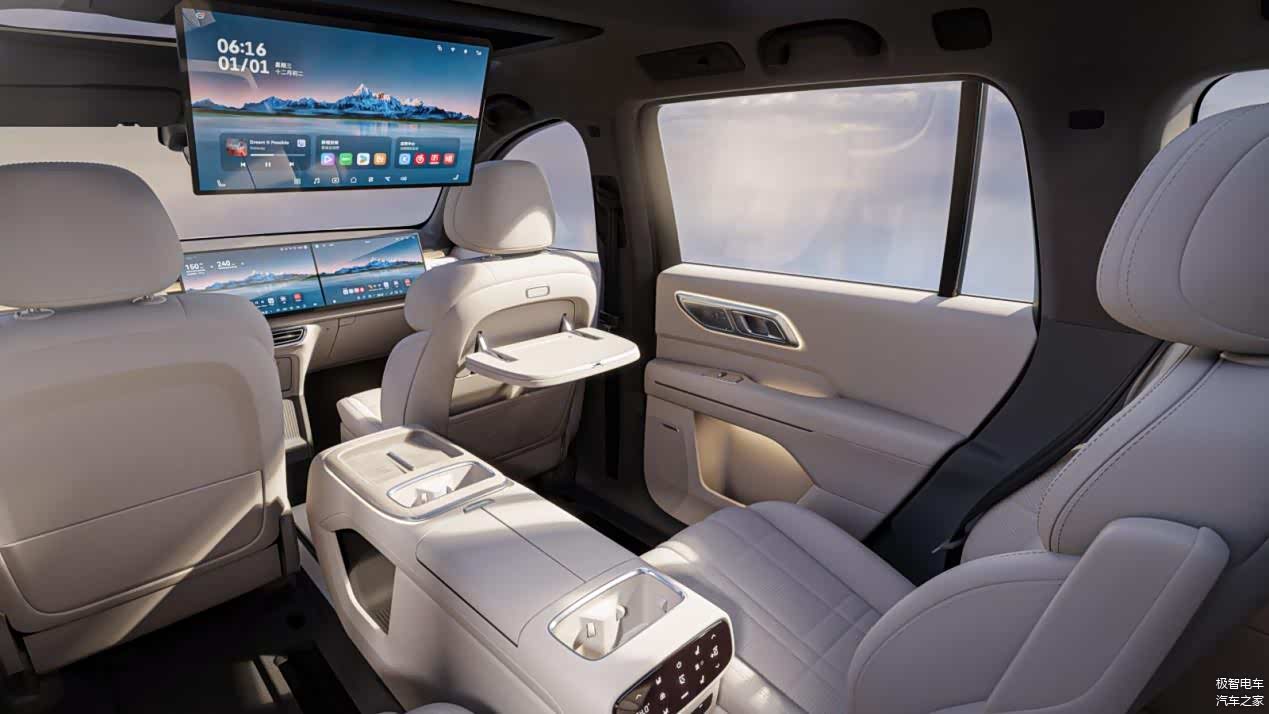 细节处更见功底:10L 冷热两用智能冰箱、前排双 15.6 英寸 2.5K 联屏 + 后排 21.4 英寸 3K 娱乐屏,瞬间把车内变成移动影音厅;翻毛皮材质与金属皮质包裹的内饰,搭配双手机充电位,豪华感直接拉满。这哪是 SUV,分明是 “移动的六星酒店”。
