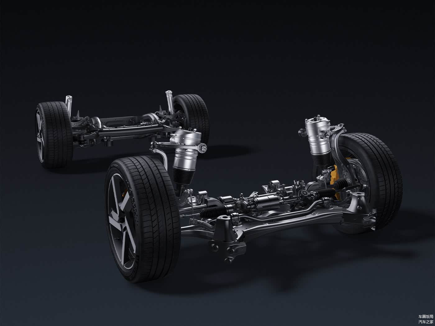 底盘采用小米智能底盘,前双叉臂后多连杆,闭式双腔空气弹簧+连续阻尼可变减振器,北河Brembo®前四活塞固定卡钳和四合一域控制模块,提升了整体车辆的舒适性和稳定性。