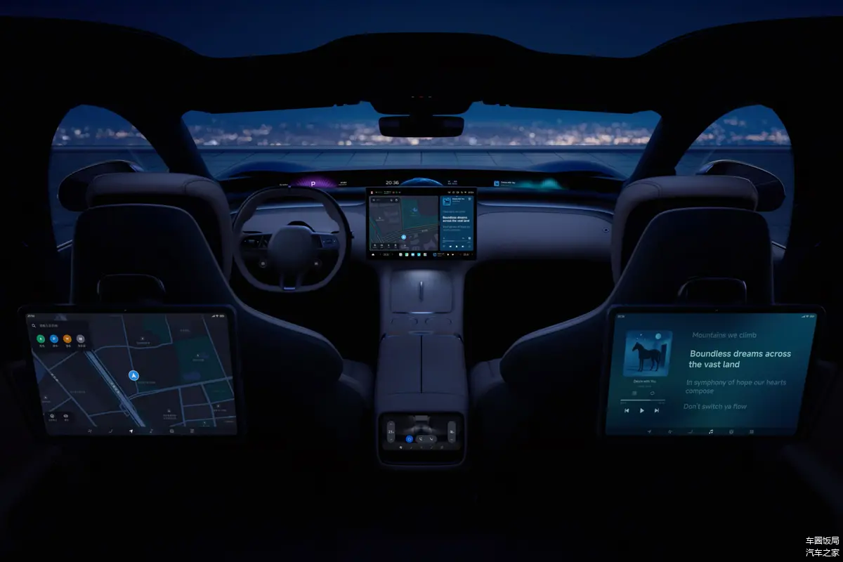 小米YU7采用全新的Xiaomi HyperVision座舱,打破传统仪表屏、中控屏、后排娱乐屏各自为政的孤岛状态,形成一个动态协同、信息流统一的“感官矩阵”。以P-HUD为起点,通过广角投影将导航、ADAS辅助驾驶信息、音乐提示、环境状态等内容。用户无需低头,便可完成驾驶感知与信息读取。
