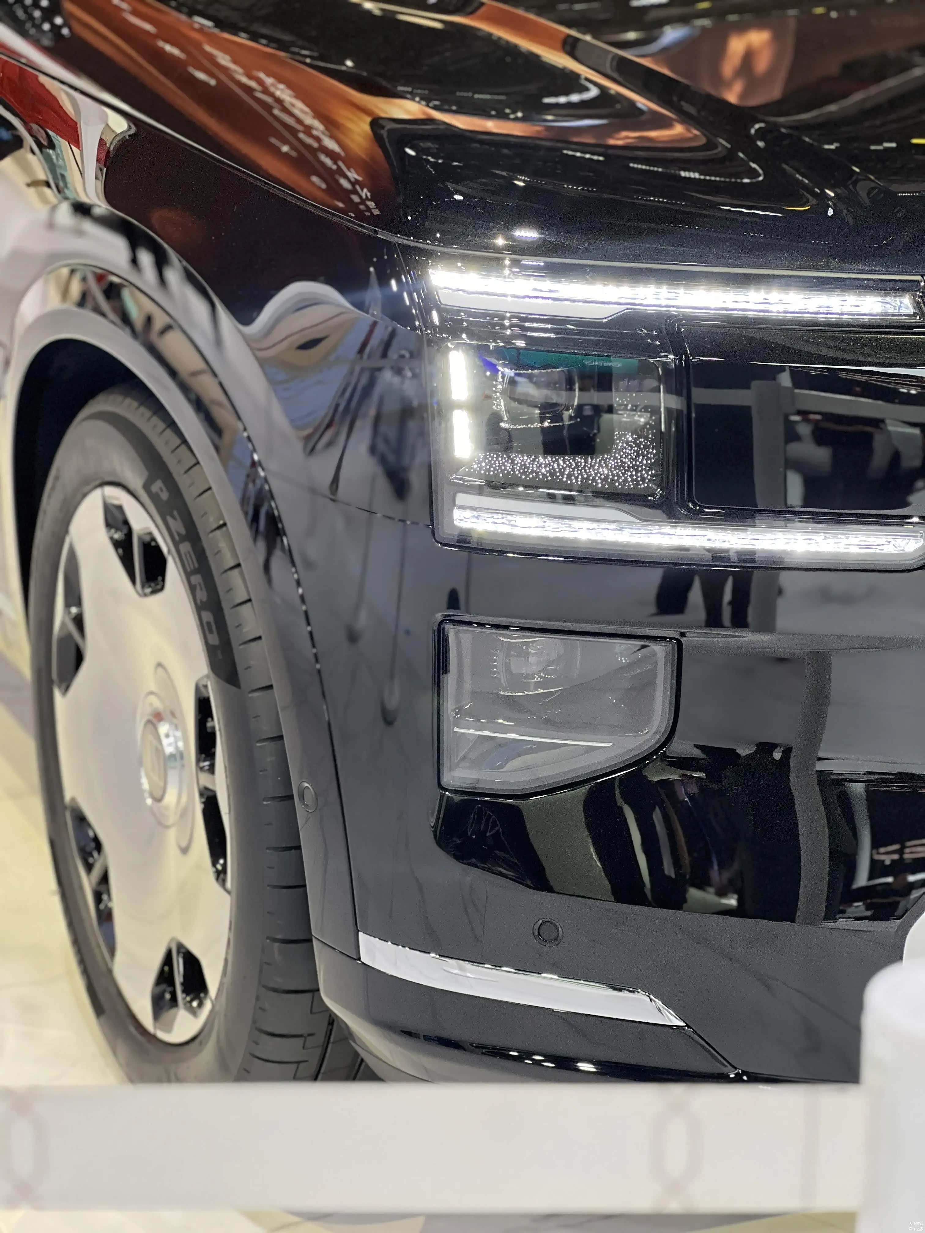 当我第一次看到极氪9X时,我不禁产生了一种与劳斯莱斯库里南相似的感觉。方正设计的车头装配了大面积的银色直瀑式进气格栅,这与库里南的设计理念高度一致,极大地提升了豪华感和气势。两侧的大灯都是矩形设计,并融入了浩瀚星钻的矩阵灯组,这进一步增强了它们的高级感。此外,车的顶部装有5颗激光雷达,这将是吉利首次为L3级智能辅助驾驶设计的千里浩瀚H9组合辅助驾驶方案。