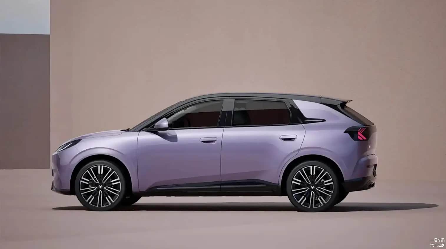 车身尺寸上,极狐 T1 长宽高分别为 4337mm、1860mm、1572mm,轴距达 2770mm,比吉利星愿和比亚迪海豚稍大,但小于自家的极狐考拉 S。侧面采用饱满溜背造型,C/D 柱间同色设计与悬浮式车顶相呼应,甚至让人联想到极氪 X。半隐藏式门把手与 17/18 英寸多种造型轮毂,带来时尚前卫感。此外,还提供紫色、蓝色、灰色等多种车色选择。