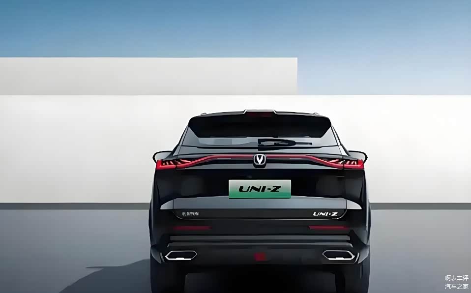 如果说现款UNI-Z的设计还带着几分家族化收敛,那么新款车型的尾部改造堪称大胆。设计师用大量横向线条切割出立体感十足的尾部轮廓,贯穿式LED尾灯与熏黑扰流板的组合,让车尾呈现出一种机甲战士般的冷峻气质;有趣的是,燃油版和插混版通过排气布局划清界限——双边四出与双边双出的设计差异,暗示了两套动力系统的性格分裂。