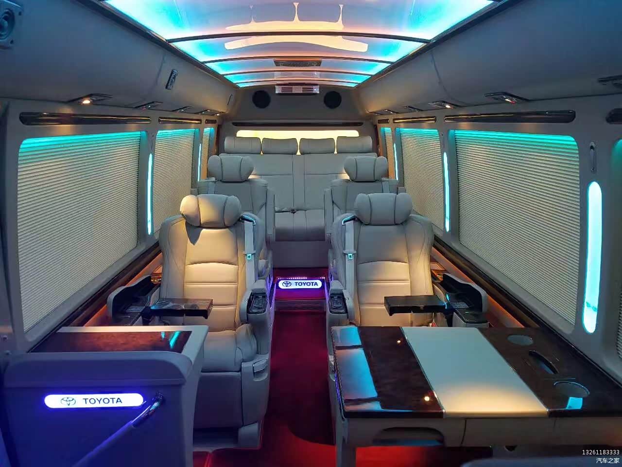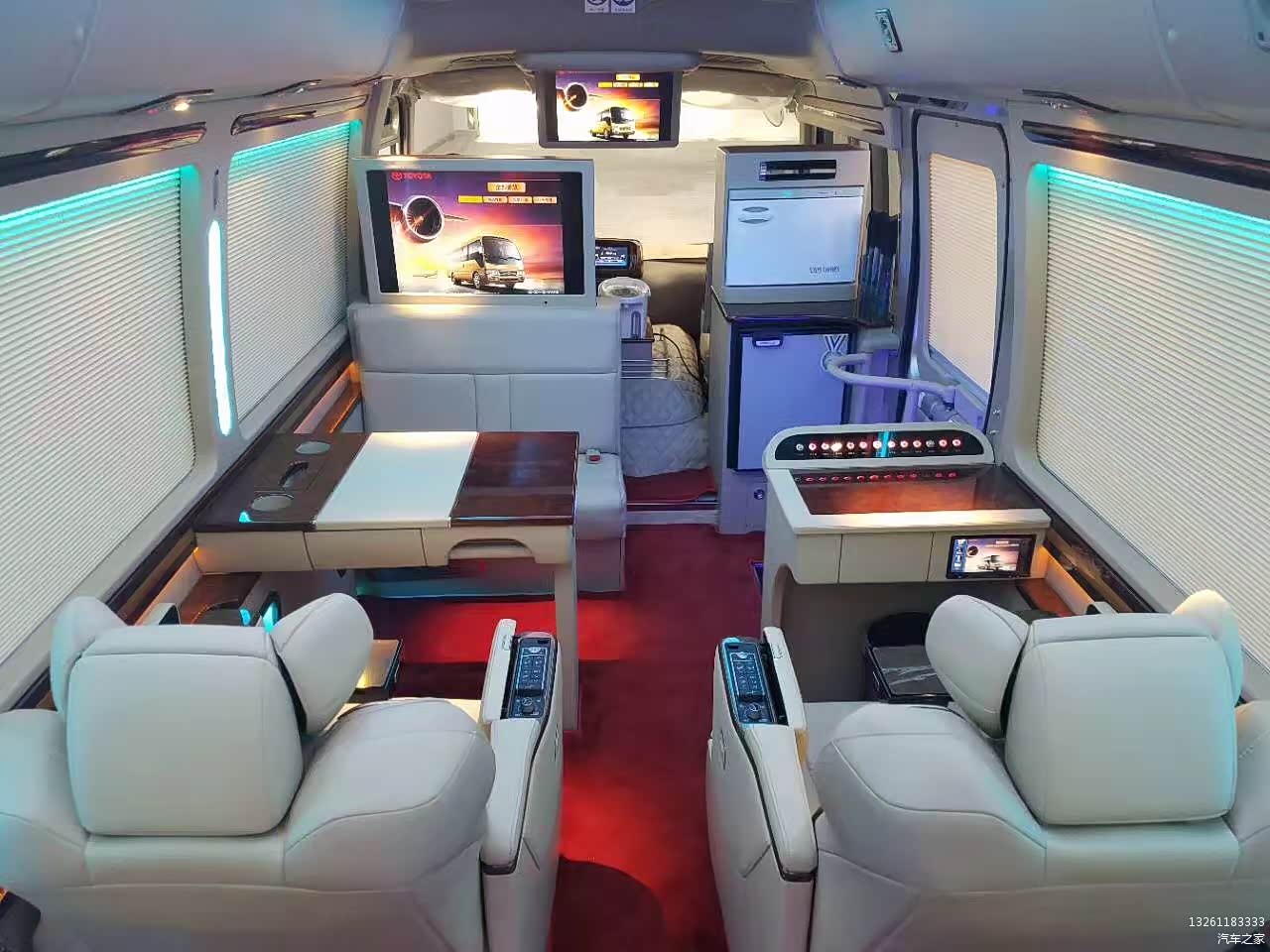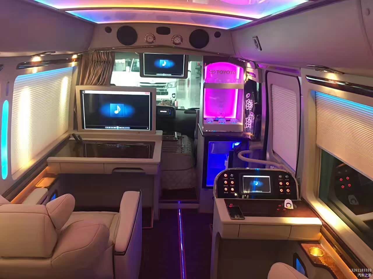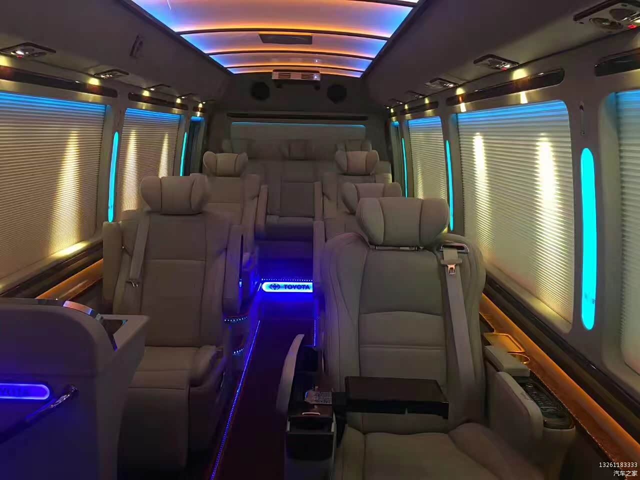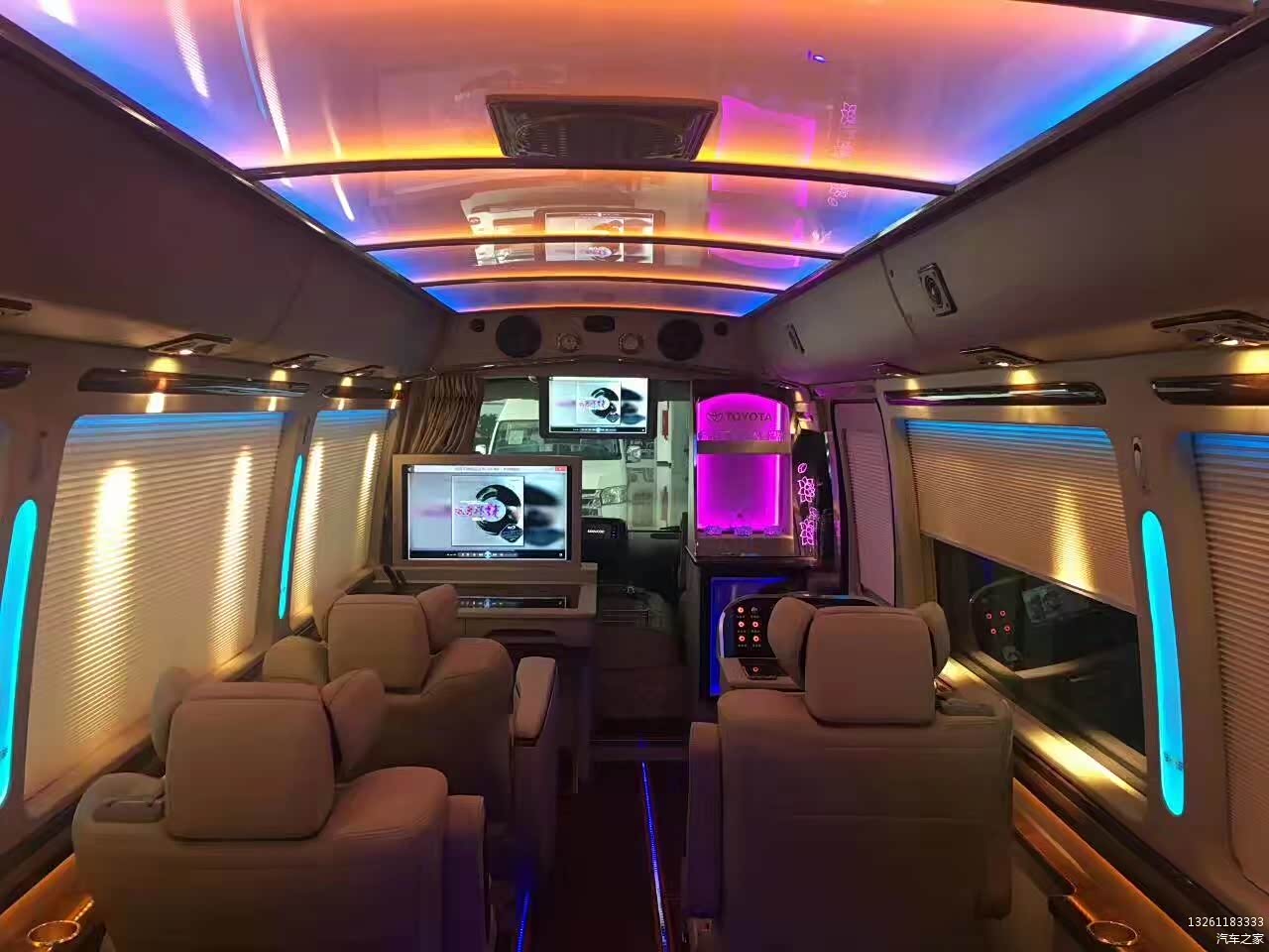 2017全新丰田考斯特12座改装VIP版装备:卫星导航系统+7寸液晶显示,DVD,电视,电子狗,19寸液晶电动折叠显示器,拆装天花,车顶显示器安装支架及线材(带电脑插头),新被电脑线、音频线,新配12V转220V逆变器(300W),电脑、音频、220V电源插座,电脑二分切器,电脑贰分配器,电脑设备安装及安置线路、线材,红外线倒车摄像头&摄像头外装修及布线。