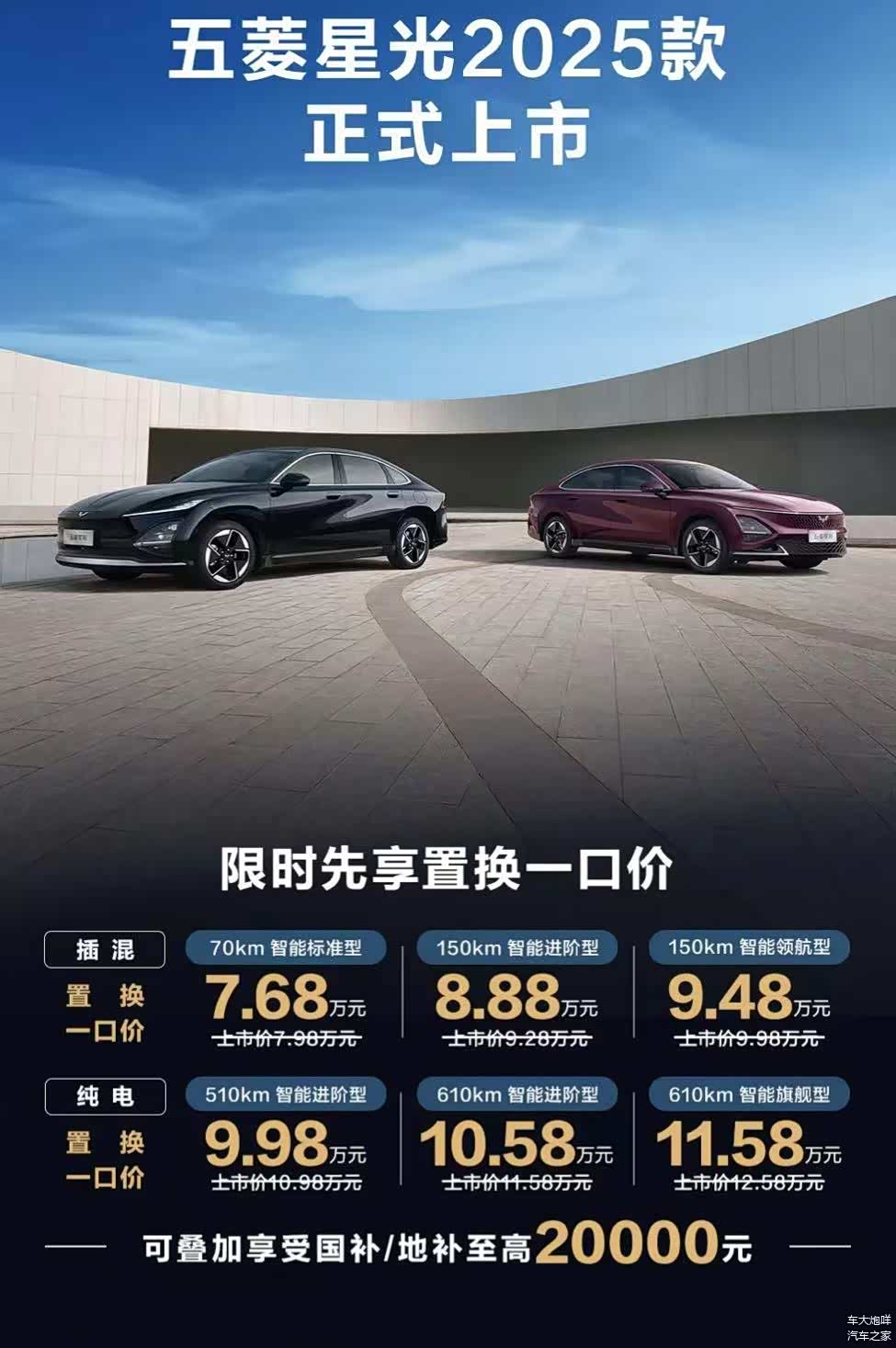 5月28日,笔者从上汽通用五菱官方获悉,2025款 五菱星光(图片 | 参数 | 询价)现已正式上市,其中PHEV插电混动版提供3款车型,售价为7.98万-9.98万元;EV纯电版可选3款车型,售价10.98万-12.58万元。