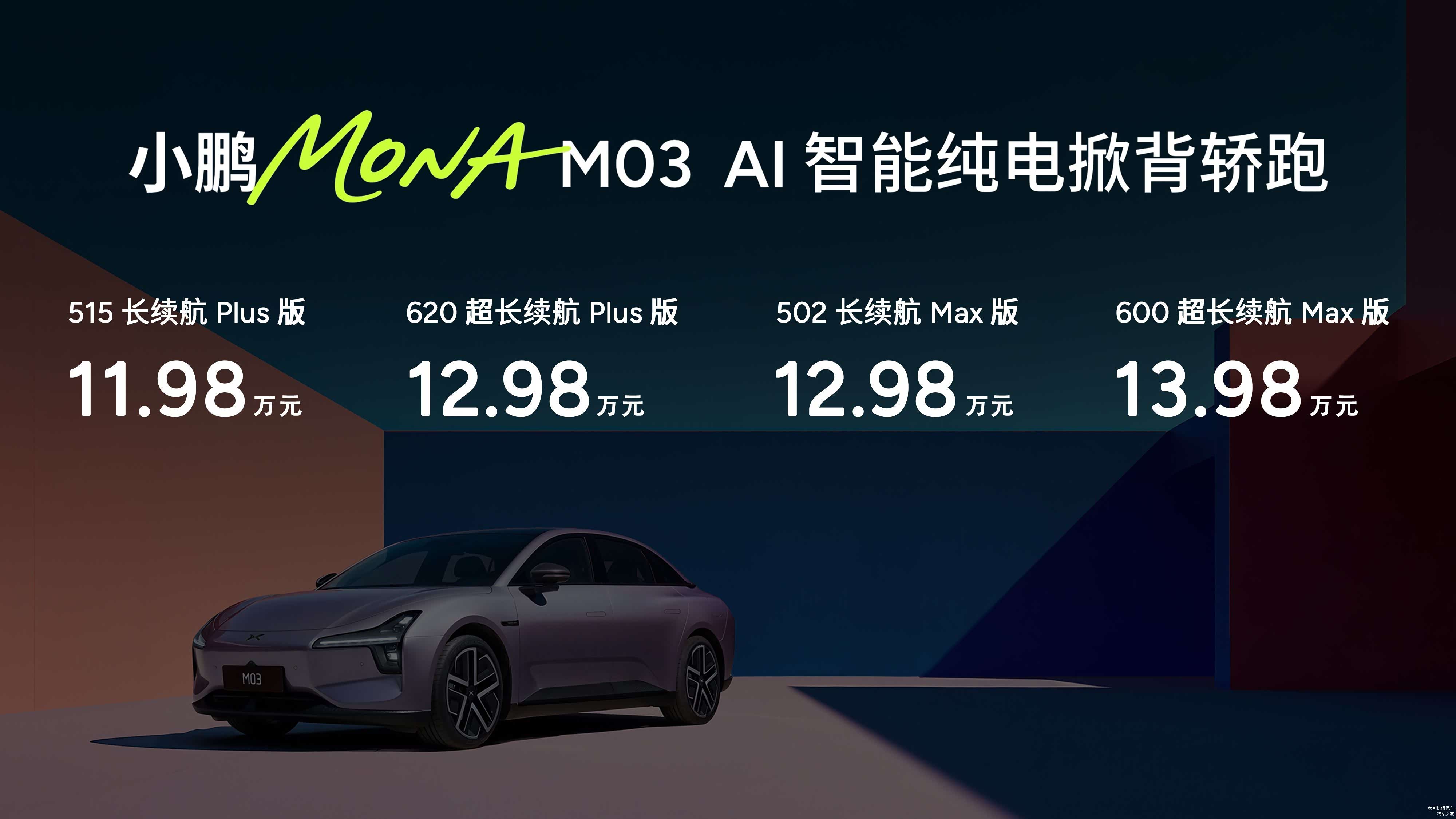 小鹏MONA M03 502长续航Max,售价12.98万元