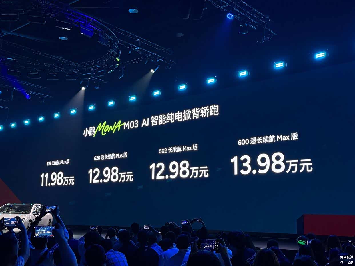 5月28日晚, 小鹏MONA M03(图片 | 参数 | 询价) MAX版正式上市,新车共推出2个版本车型,指导价为12.98万和13.98万元。值得一提的是,本次官方还推出了515长续航Plus版和620超长续航Plus版车型,售价分别为11.98万和12.98万。